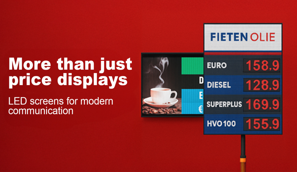 Digital LED displays have long since replaced classic price boards at petrol stations and offer far more than just price information. Light & Sign GmbH combines modern technology with maximum visibility and enables contemporary, flexible and effective customer communication through innovative LED screens.