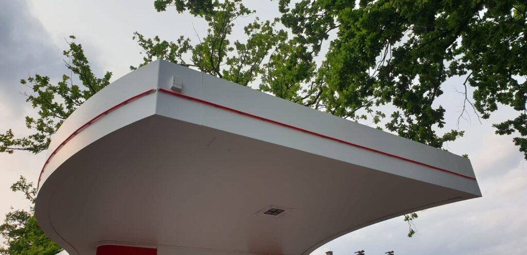 - Assembly: Three sides of the petrol station roof